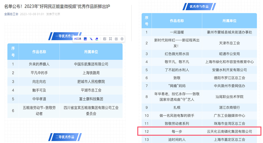 自2023年6月以來(lái),按照云南省總工會(huì)和云南省網(wǎng)信辦《關(guān)于聯(lián)合開(kāi)展2023年“網(wǎng)聚職工正能量 爭(zhēng)做中國(guó)好網(wǎng)民”主題活動(dòng)的通知》要求,公司工會(huì)按照云天化集團(tuán)工會(huì)工作部署,圍繞“奮進(jìn)新征、程建功新時(shí)代”這一主旋律,精心組織,廣泛征集活動(dòng)作品,廣大職工熱情參與,積極組織開(kāi)展作品選送工作。