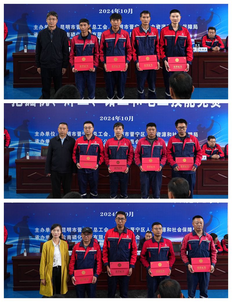 經(jīng)過一天的激烈比拼,公司昆陽磷礦職工郭林慶、檢維修中心職工沈君縣和楊強、尖山磷礦職工王正山以優(yōu)異的實操成績分別奪得挖掘機、焊工、電工、鉗工技能競賽冠軍,并被授予2024年晉寧區(qū)挖掘機、焊工、電工、鉗工技能競賽“技術(shù)狀元”榮譽稱號。